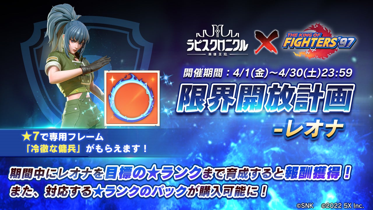 4/1(金)からの期間限定で、新たな英雄【冷徹な傭兵】レオナが登場!また、「異界召喚」に不知火舞が再登場!