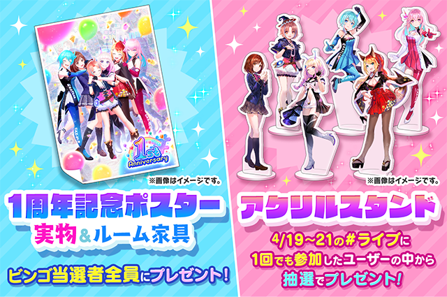 4月21日(木)の#ライブでは「運命のビンゴ」の実施を予定しております。こちらの「運命のビンゴ」でビンゴした方全員に「1周年記念ポスター」をプレゼントいたします。