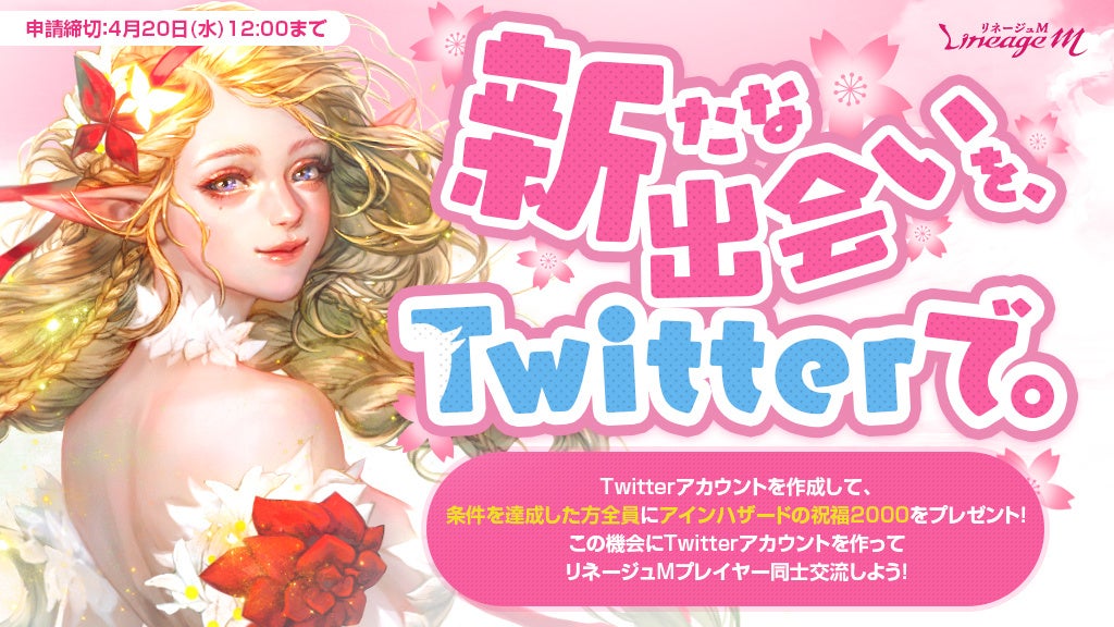 Twitterアカウントを作成し、条件を満たした方全員に「アインハザードの祝福」を2,000プレゼントする、「新たな出会いを、Twitterで。」を開催します。