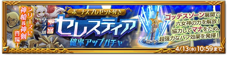 <女神の力で仲間を援護せよ!「ジョブ別 セレスティア確率アップガチャ」販売中!>