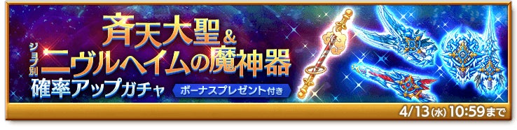 期間中、「ジョブ別 斉天大聖&ニヴルヘイムの魔神器確率アップガチャ」を販売します。
