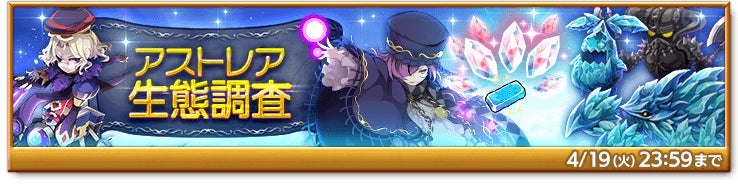 [アストレア生態調査 期間] 2022/4/19(火)23:59まで[アストレア 素材ドロップ&取得上限2倍キャンペーン 期間] 2022/4/13(水)4:59まで