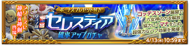 <女神の力で仲間を援護せよ!「ジョブ別 セレスティア確率アップガチャ」販売中!>