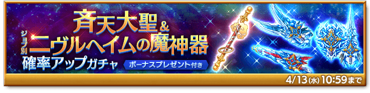 期間中、「ジョブ別 斉天大聖&ニヴルヘイムの魔神器確率アップガチャ」を販売します。