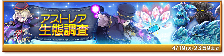 [アストレア生態調査 期間] 2022/4/19(火)23:59まで[アストレア 素材ドロップ&取得上限2倍キャンペーン 期間] 2022/4/13(水)4:59まで