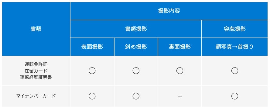 eKYCでは下記の本人確認書類がご利用いただけます。