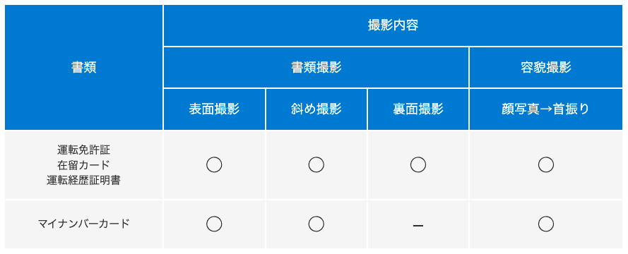 eKYCでは下記の本人確認書類がご利用いただけます。