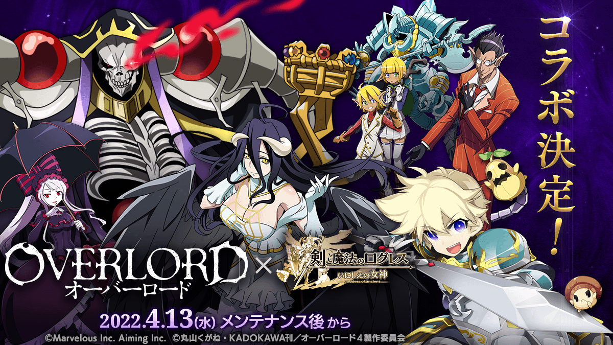 株式会社マーベラス(代表取締役社長:許田 周一/所在地:東京都品川区)は、スマートフォン向け本格オンラインRPG『剣と魔法のログレス いにしえの女神』において、『ログレス』×『オーバーロード』コラボが2022/4/13(水)より開催することをお知らせいたします。