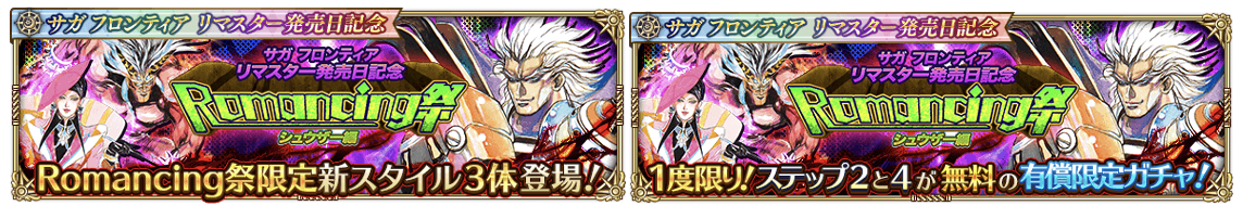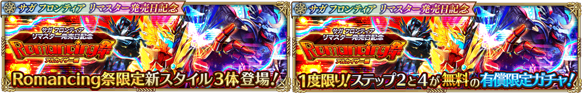 新ガチャ「サガ フロンティア リマスター発売日記念 Romancing祭 アルカイザー編」を開催いたします。