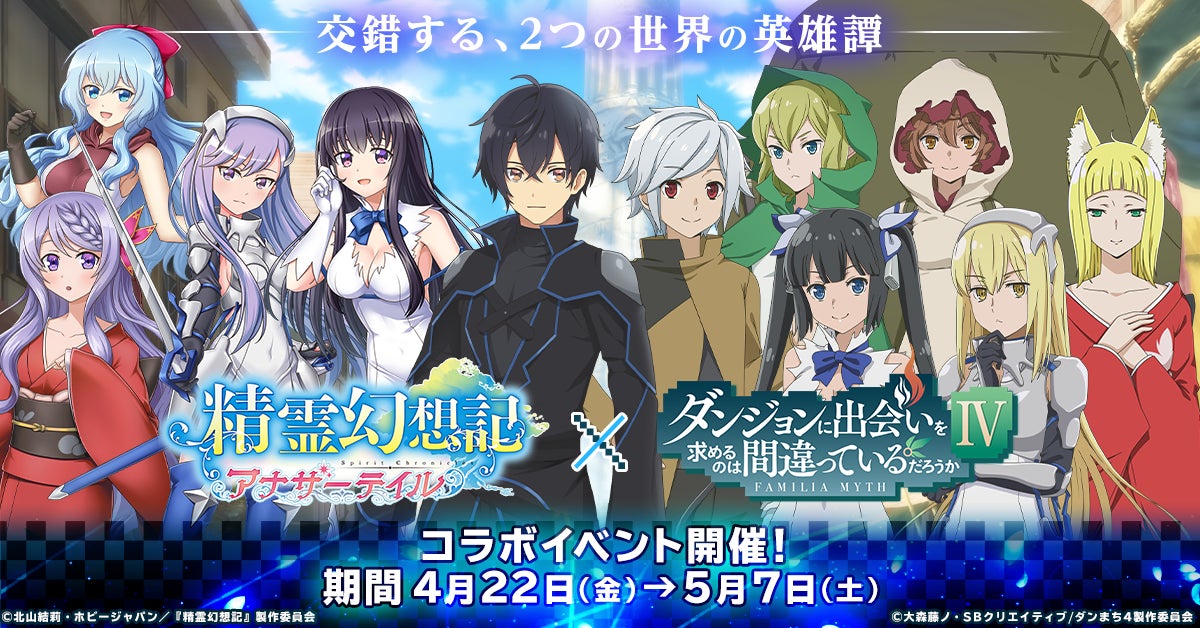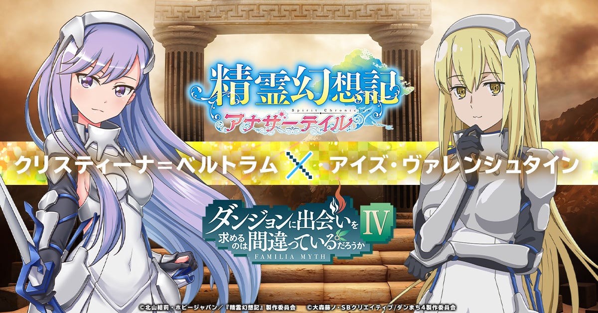 CTW株式会社は、「G123」にて配信中のHTML5ゲーム『精霊幻想記アナザーテイル』(以下、アナテイ)にてアニメ「ダンジョンに出会いを求めるのは間違っているだろうかⅣ」とのコラボイベントを開催することをお知らせいたします。