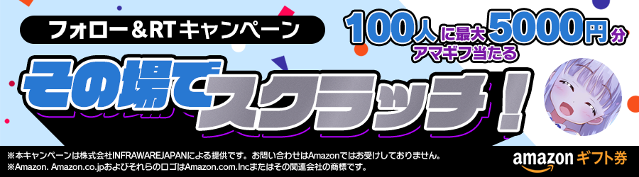 また、今回も公式Twitterでは合計100人に最大5000円のAmazonギフト券が当たるインスタントウィンキャンペーンも開催いたします。
