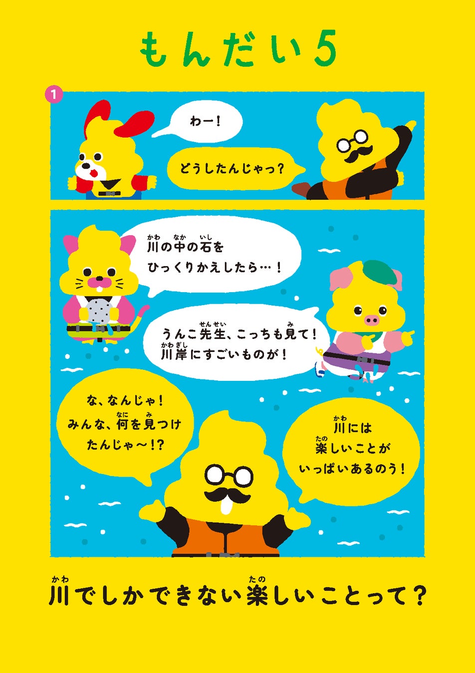 ▲うんこドリル 川の安全 冊子表紙 ▲うんこドリル 川の安全 WEBアプリ