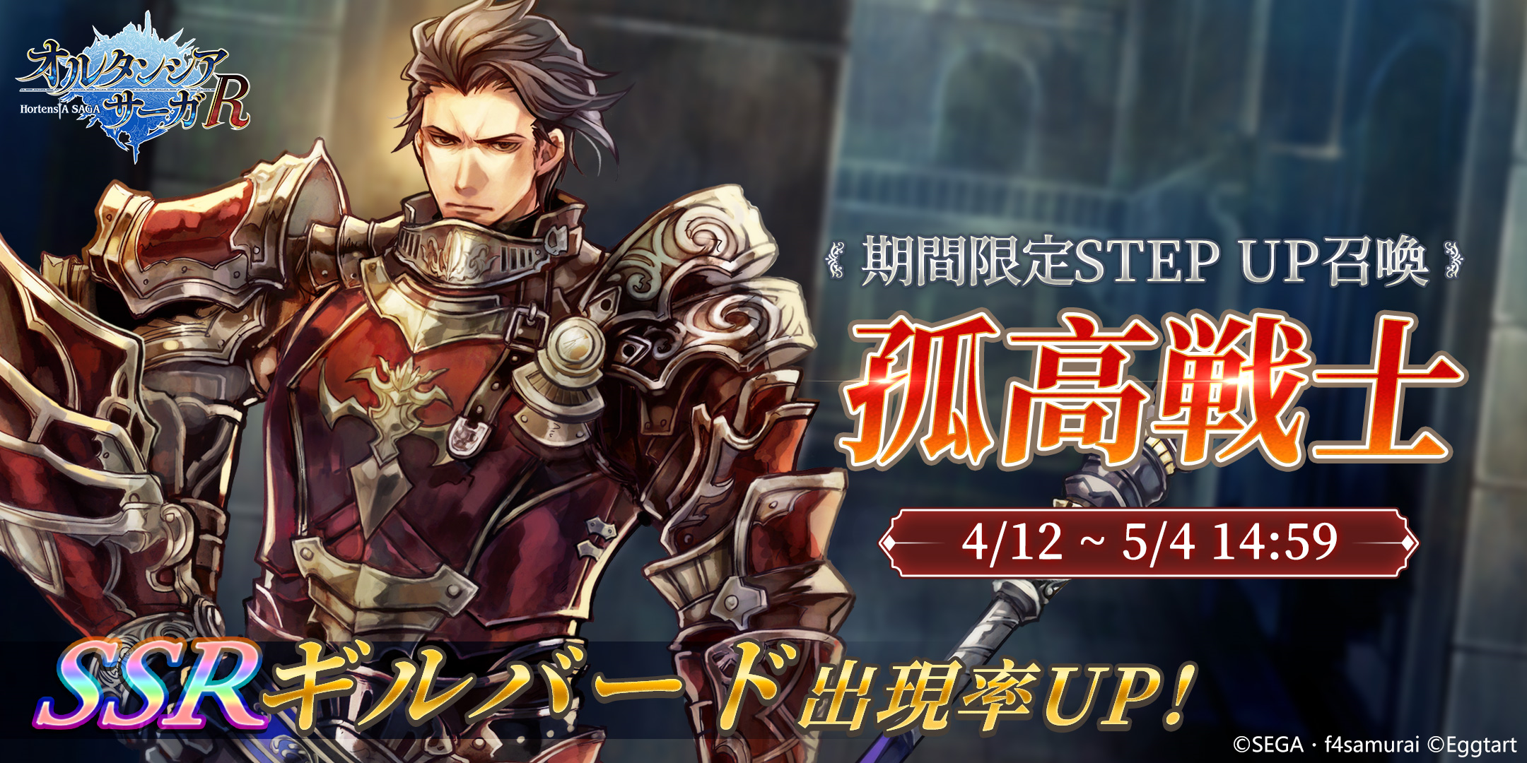 好評配信中のiOS/Android向け3Dアニメ×戦記RPGゲーム『オルタンシア・サーガR(以下「オルサガR」)』は、4月12日(火)より、新SSRユニット「ギルバード」が登場するSTEP UP召喚“孤高戦士”を開始いたしました。