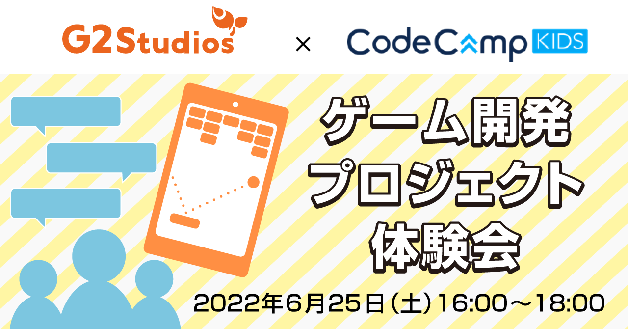 コードキャンプ株式会社(本社:東京都品川区、代表取締役CEO 堀内亮平)が運営する小学生・中学生向けプログラミングスクール「CodeCampKIDS(コードキャンプキッズ)」は、2022年6月25日(土)にゲーム開発プロジェクト体験会をG2 Studios株式会社(本社:東京都渋谷区、代表取締役社長:桜井敦)と共同で開催します。