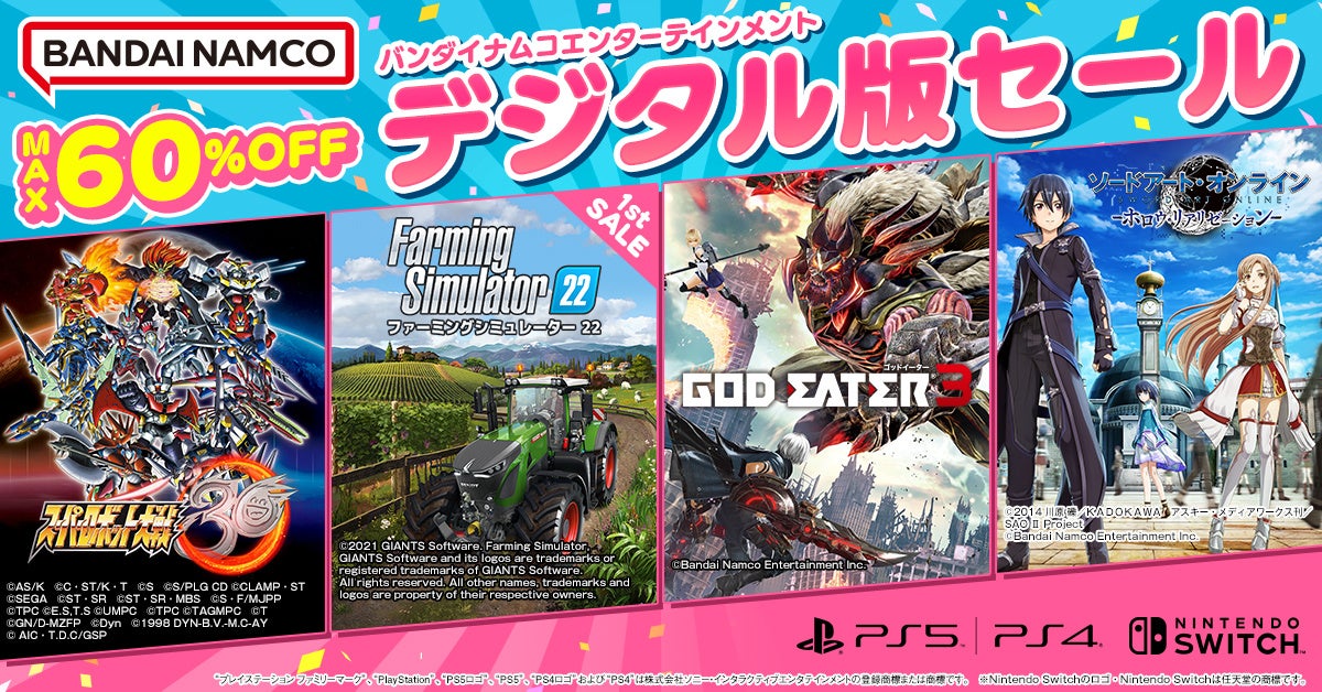 ニンテンドーeショップにて開催中の『バンダイナムコエンターテインメント スプリングセール』では、「GOD EATER 3」が41%OFFの4,400円(税込)、「ソードアート・オンライン -ホロウ・リアリゼーション- DELUXE EDITION」が40%OFFの3,740円(税込)になるなど、人気タイトルが大幅プライスダウン。このチャンスをお見逃しなく!