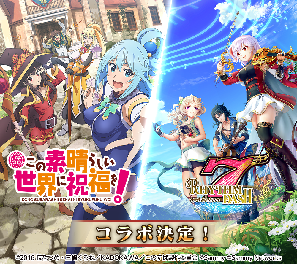 株式会社サミーネットワークスのスマートフォン向け新感覚リズムファンタジーRPG「ナナリズムダッシュ」は、2022年4月19日(火)より、「パチスロこの素晴らしい世界に祝福を!」とのコラボイベントを開催いたします。