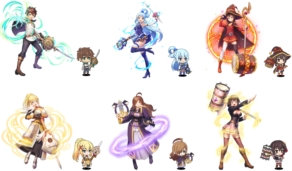 キャラクターガチャのPART1からはアクア、ダクネス、ウィズ、PART2からはめぐみん、ゆんゆんが出現!