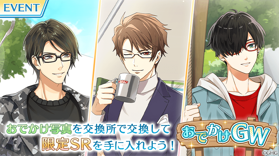 イベント限定SRにはボイス付きの専用エピソードが付いており、各カレのエピソードの内容は、同時開催の期間限定ガチャ「第1弾GWガチャ」で新登場するSSRフォトカードで描かれるエピソードの前日譚となっています。
