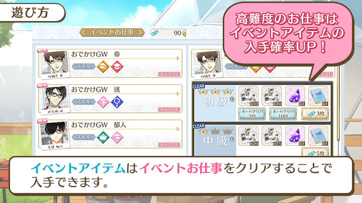 イベント限定のお仕事をクリアすると、確率でイベントアイテム「おでかけ写真」を入手することができます。