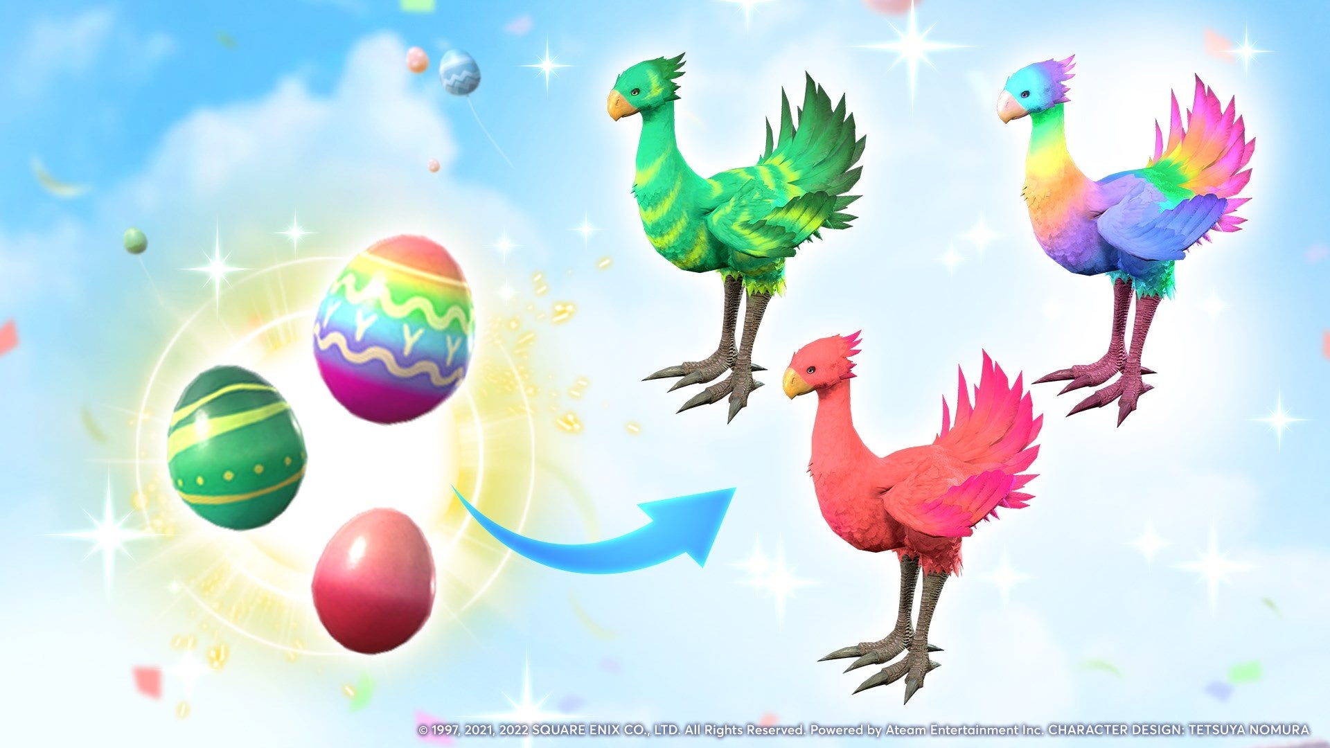 フィールドに隠されたチョコボの卵を集めて、ウサギや飾りたまごがモチーフのさまざまなアイテムを獲得しましょう。