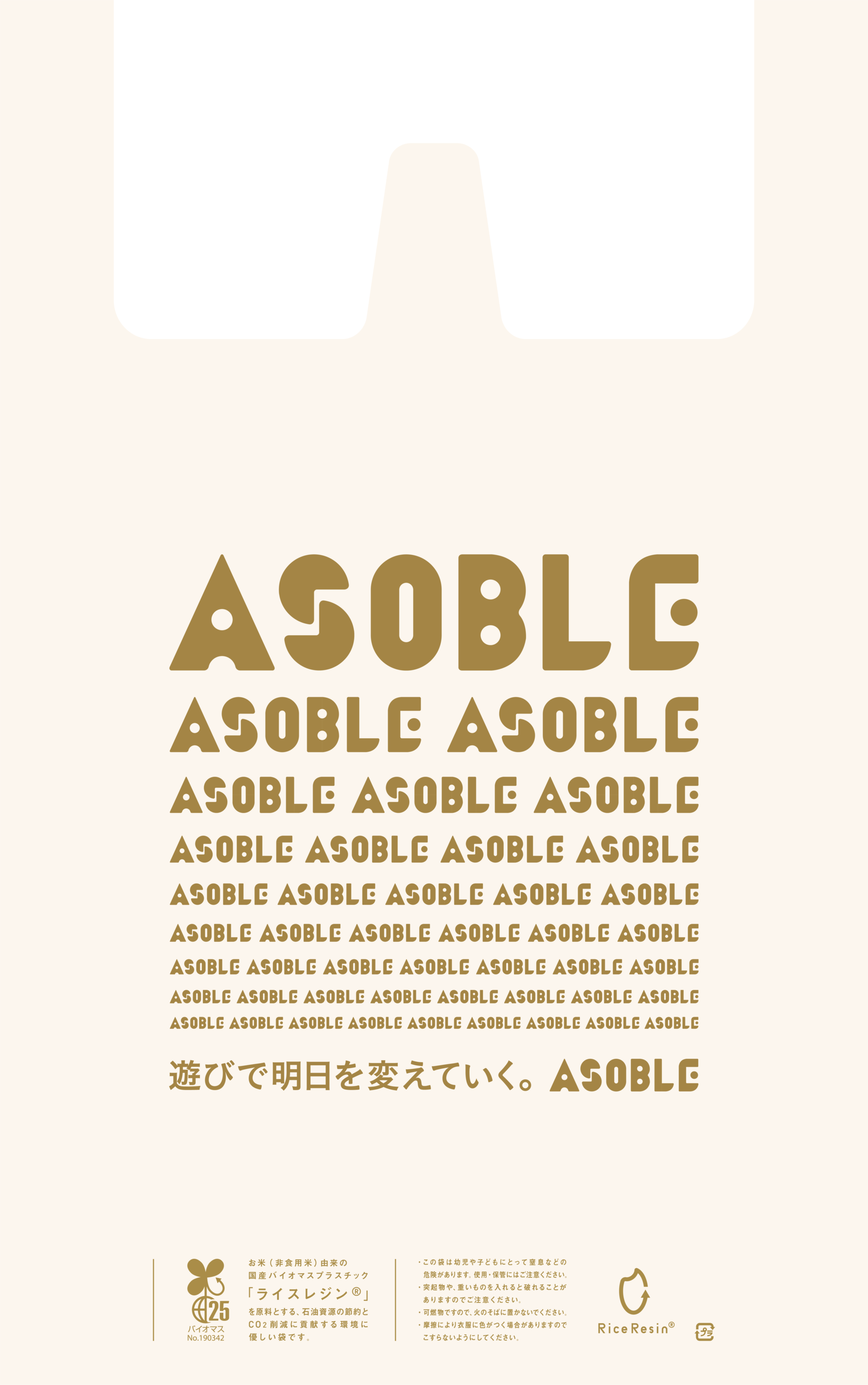 ASOBLEで使用している景品袋は、ライスレジン素材を採用しております。ライスレジンとは、お米(非食用)由来の国産バイオマスプラスチック。用に適さない古米や米菓メーカーなどで発生する破砕米など、飼料としても処理されず廃棄されてしまうお米を、新しいテクノロジーでプラスチックへとアップサイクル。地球に還る新プラスチック素材です。