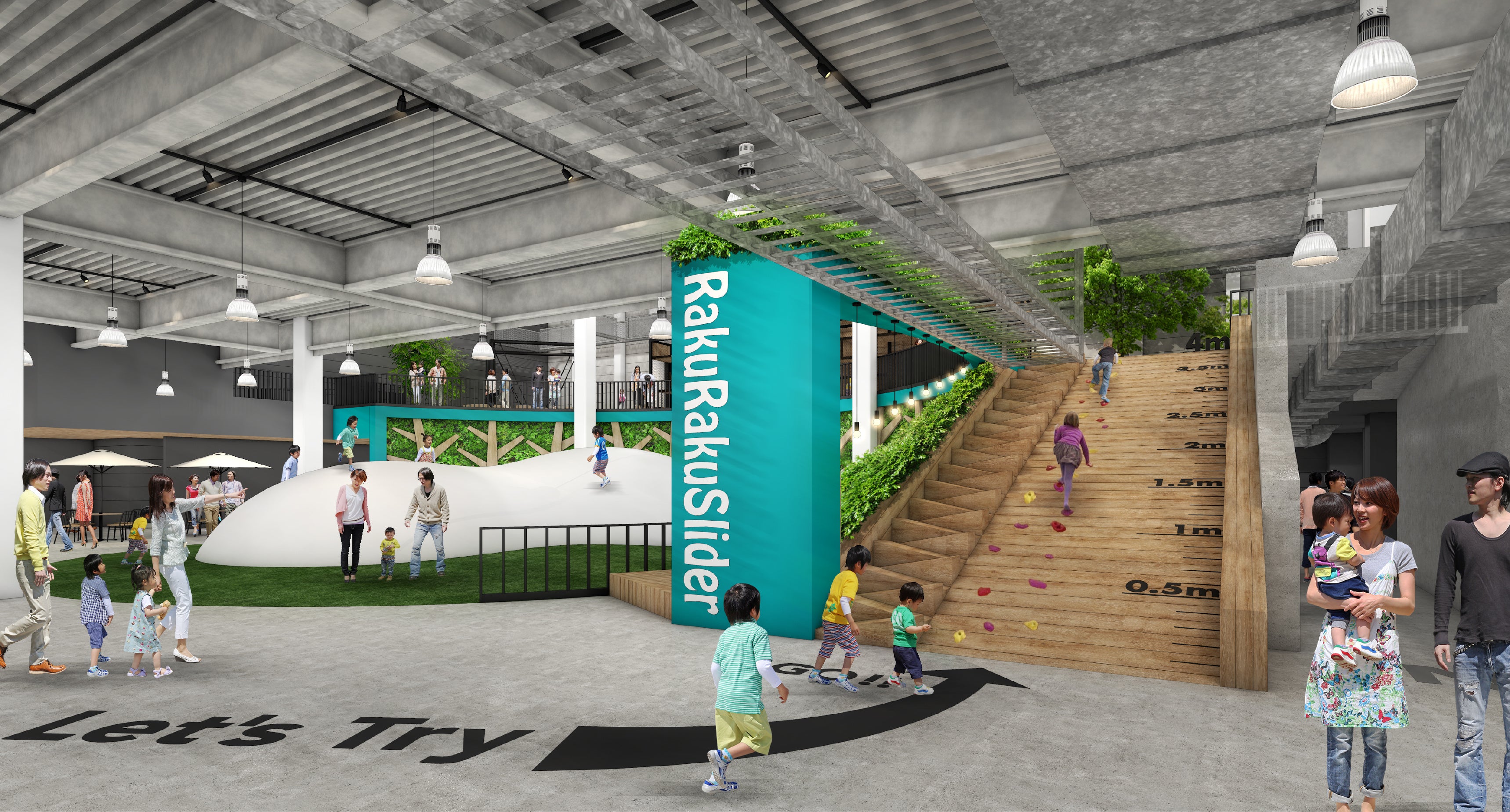 不思議と何度も遊びたくなるスベリ台です。隣には、ボルタリングレーンも設置。すべって、上って、全身を使って楽しめます。