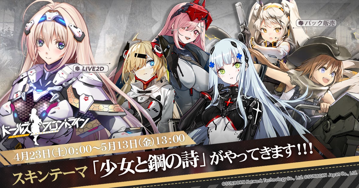 株式会社サンボーンジャパンは、スマホ向け戦略型シミュレーションゲーム『ドールズフロントライン(以下、「ドルフロ」)』において、4月23日(土)0時より追加されるパイロットスーツをモチーフにしたスキンテーマ「少女と鋼の詩」を先行して公開いたします。