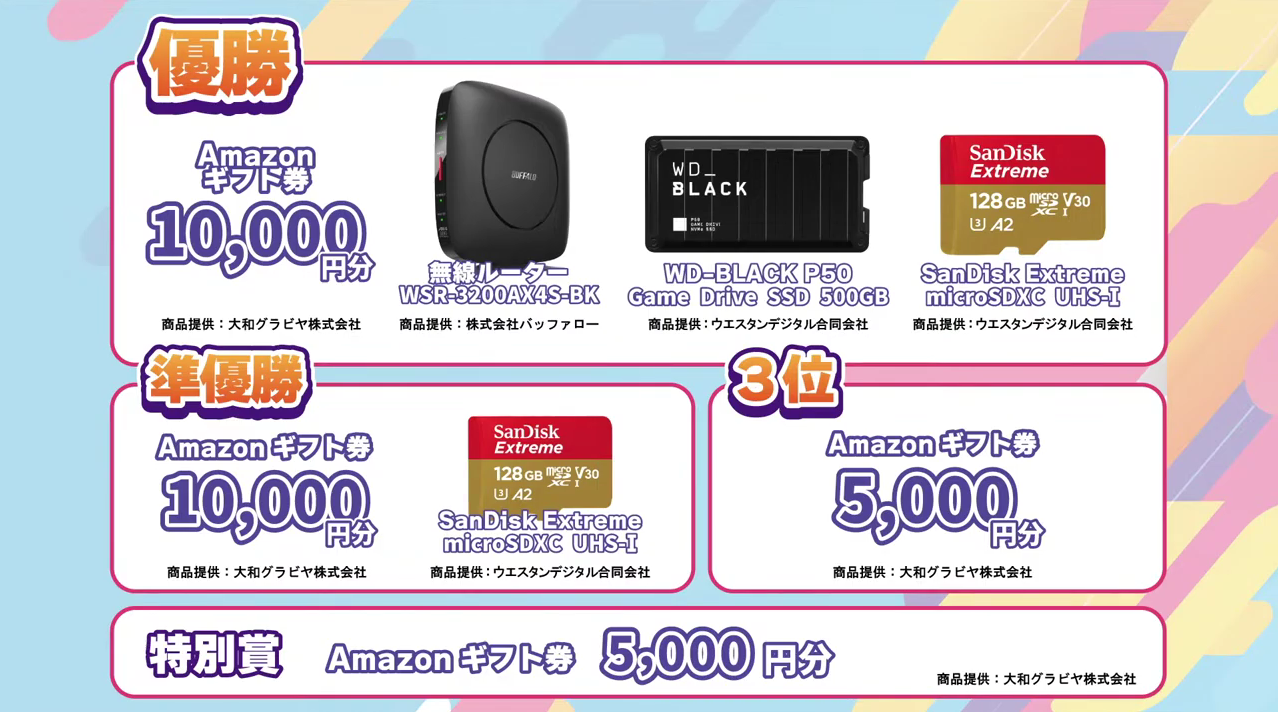 協賛 : 株式会社藤田屋、大和グラビヤ株式会社、株式会社バッファロー、ウエスタンデジタル合同会社