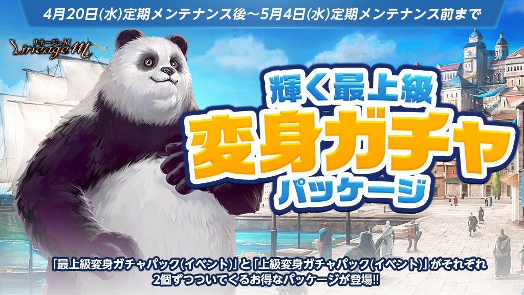高級から伝説級までの変身が定められた確率で獲得できる「最上級変身ガチャパック(イベント)」と一般から英雄級までの変身が定められた確率で獲得できる「上級変身ガチャパック(イベント)」が2個ずつ手に入る「輝く最上級変身ガチャパッケージ」が登場しました。