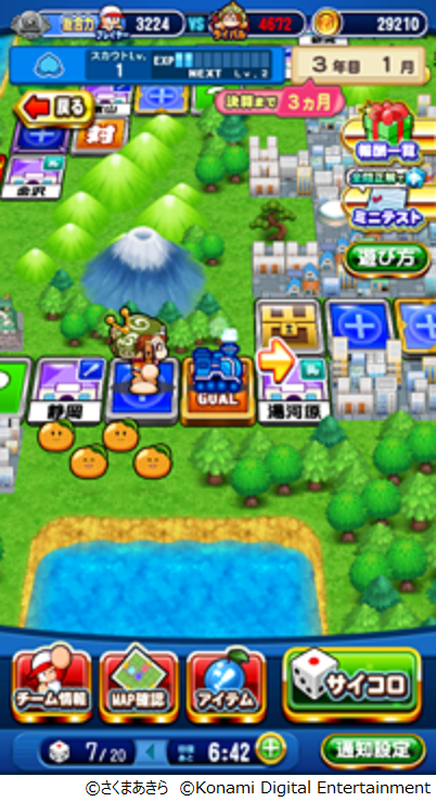 スタジアムイベント「さいころパレード」がスタート!今回の「さいころパレード」は桃鉄コラボ仕様です!様々な効果のあるマスが並んだすごろくを巡りながら、MAP内にある物件を購入してチームを強化。ライバルチームに勝利しよう!