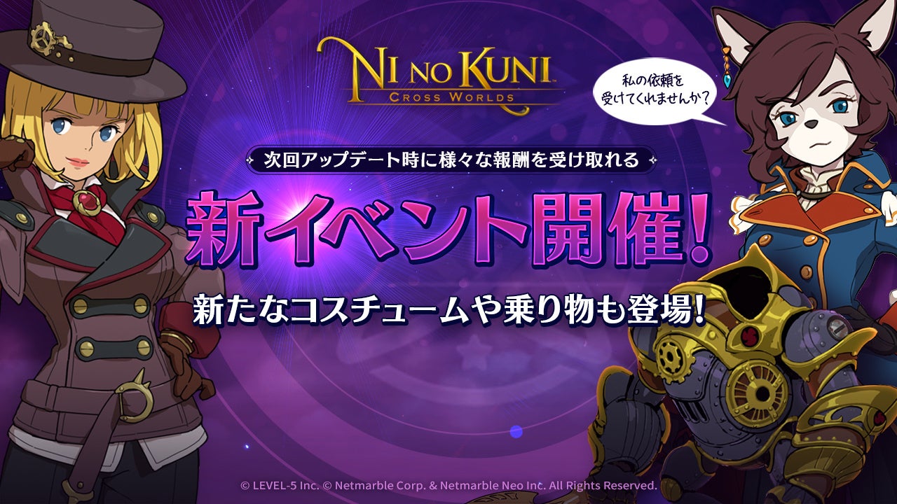 ネットマーブルは、レベルファイブとタッグを組みスマートフォン向けに開発したファンタジーアートRPG『二ノ国:Cross Worlds』(略称:ニノクロ)において、本日4月21日(木)のアップデートより、次回アップデート時に様々な報酬を手に入れられるアイテムを獲得できる新イベントを開催することをお知らせいたします。