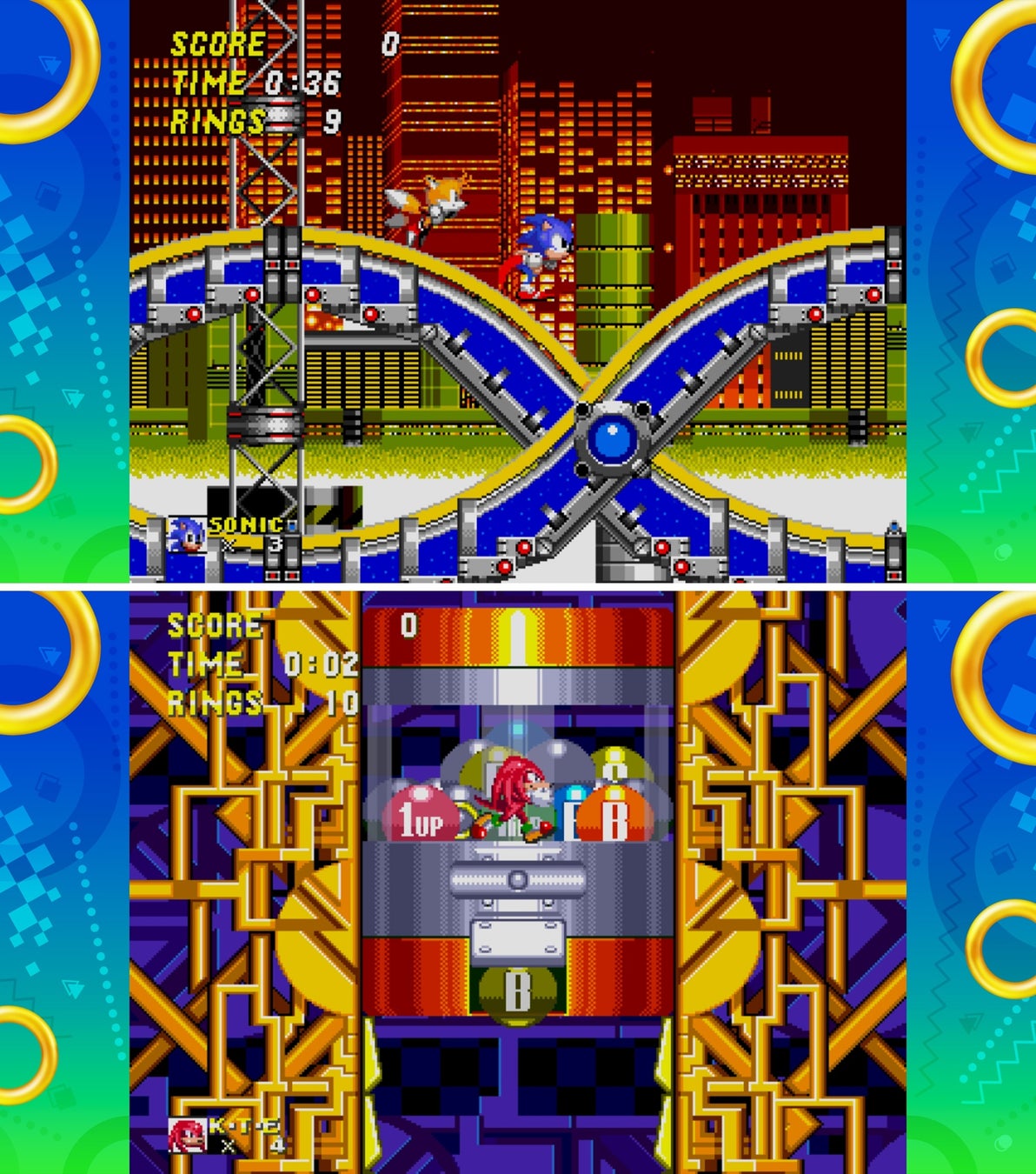 「アニバーサリーモード」では、16:9の大画面でゲームが楽しめるだけでなく、タイムオーバーとコンティニューがなくなったことで、ゲームオーバーを気にせずソニックのスピードを楽しむことができるようになりました。