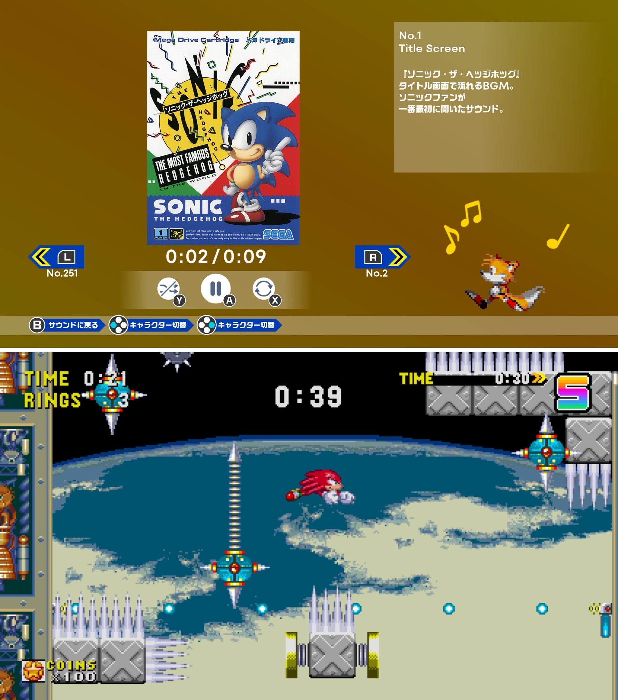・ミュージアムのサウンドに楽曲追加(『ソニックスピンボール』『カオティクス』『ソニック3Dブラスト』から全73曲)