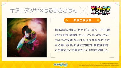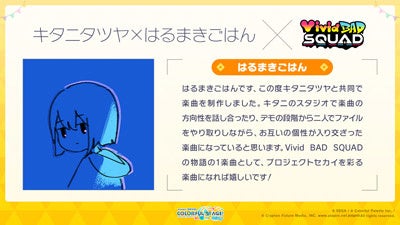 ユリイ・カノン(月詠み)さんには「MORE MORE JUMP!」のユニット楽曲、キタニタツヤさん・はるまきごはんさんには「Vivid BAD SQUAD」のユニット楽曲を提供いただきます。