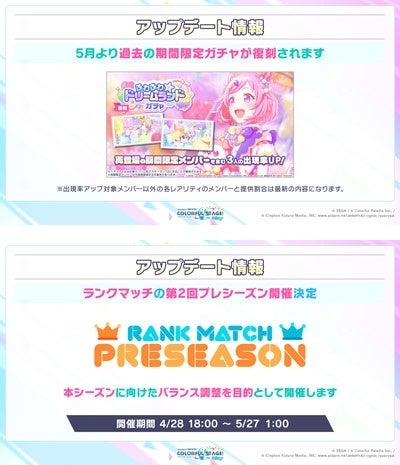過去の期間限定ガチャの復刻開催やランクマッチの第2回プレシーズン開催、キズナランクの組み合わせ追加、3Dモデルの解像度アップについてなど、アップデート情報を公開いたしました。
