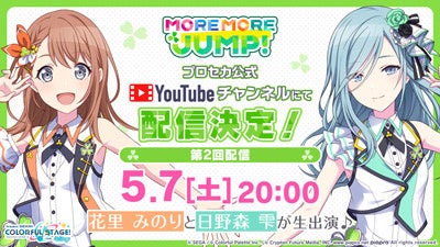 「MORE MORE JUMP!」生配信の第2回が決定いたしました。第2回配信は、2022年5月7日(土)20時より、プロセカ公式YouTubeチャンネルにて配信いたします。今回は花里みのりと日野森雫が登場いたします。ぜひ配信にご参加ください。
