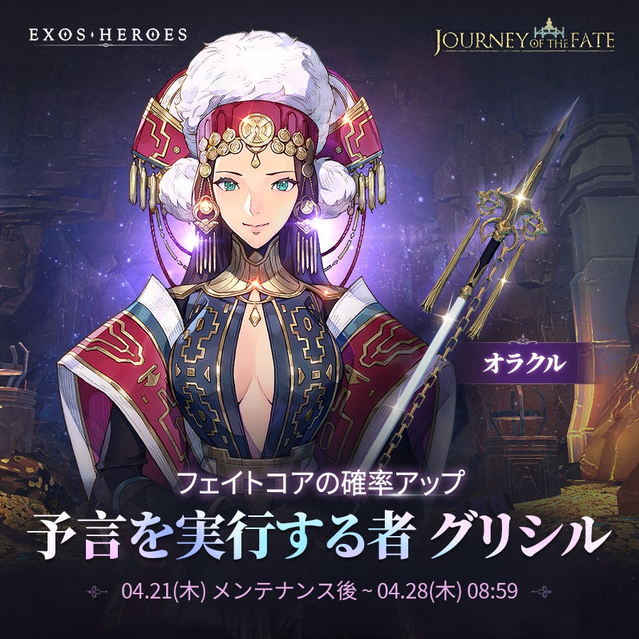 確率アップ契約では、高級契約より高い確率で英雄を獲得できます。また、専用装備として「オラクル」もあわせて登場しております。この機会にぜひ手に入れてくださいね!