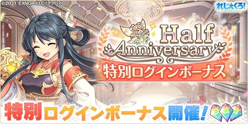 れじぇくろ!のハーフアニバーサリーを記念して、期間限定のログインボーナスを開催いたします。