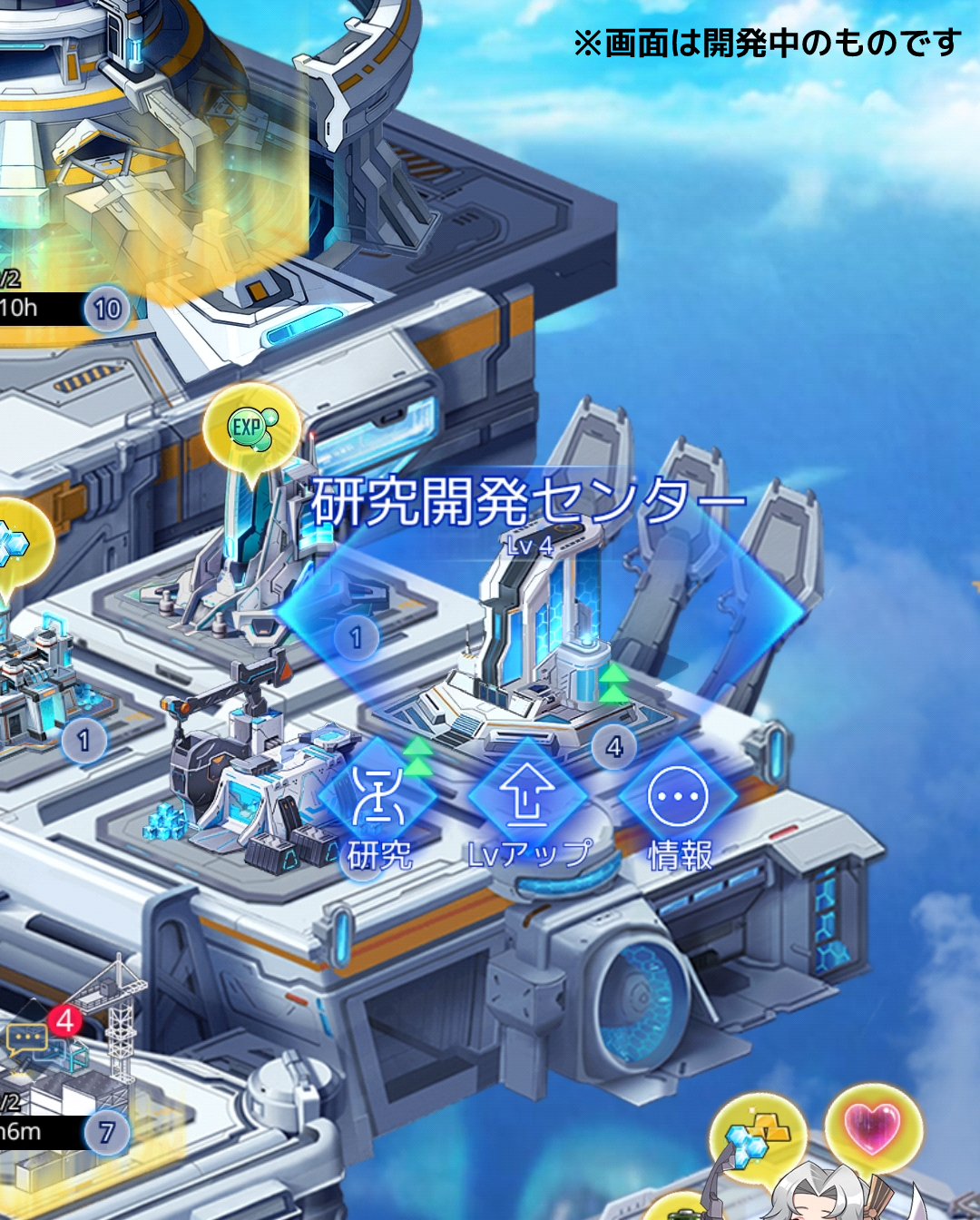 (4)研究進捗ごとに10個の研究レベルがあります。研究開発センターのレベルを1アップさせたら、研究レベルの上限が1プラスされます。