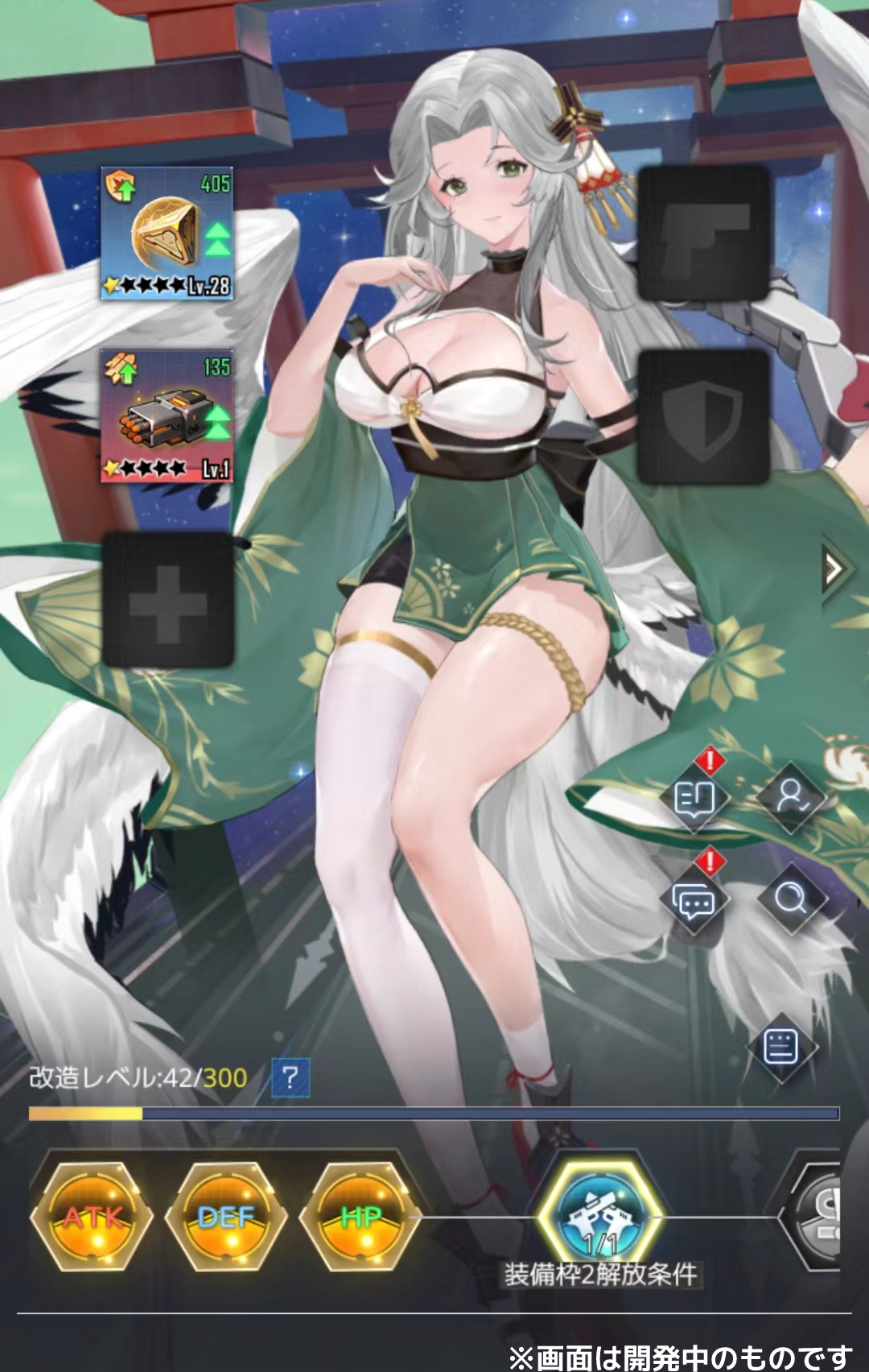 改造レベルが一定数になると、装備枠が開放され、対応する種類の装備を装着できるようになります。