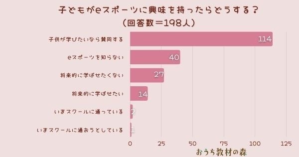 「子どもがeスポーツに興味を持ったらどうする?」とアンケート調査した結果、1位は『子供が学びたいなら賛同する』でした。
