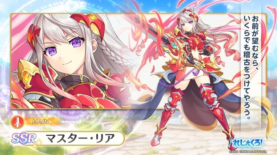合同会社EXNOA(本社:東京都港区、CEO:村中 悠介、URL:https://games.dmm.com/)が運営するDMM GAMESにおいて、真の英雄となる王道ファンタジー『れじぇくろ!~レジェンド・クローバー~』(https://www.legend-clover.net/)は、新キャラ「マスター・リア」が登場したことを発表した。またマスターソルジャー「リア」の実装を記念して、期間限定の記念パックも販売中だ。