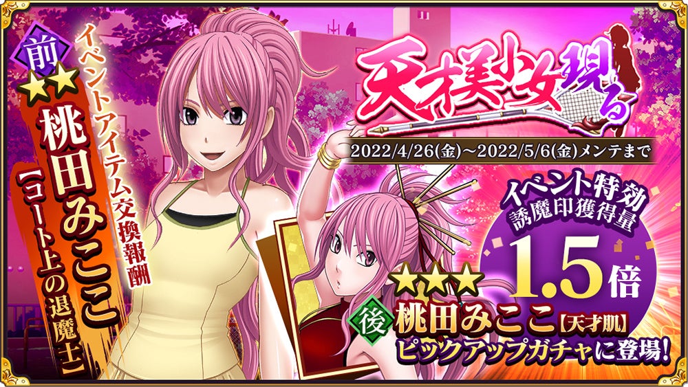 退魔士獲得イベント『天才美小女現る』が開催中です!イベントアイテム「誘魔印」を集めて、★2退魔士「桃田みここ【コート上の退魔士】」を獲得しましょう!