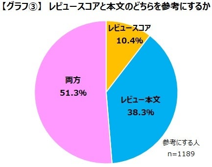 ゲーマーにスコアと本文のどちらをチェックするかを聞いてみたところ、スコアと本文の両方をチェックすると答えたゲーマーは 51.3%と過半数を占めました。レビュー本文のみをチェックするゲーマーは38.3%で、合計すると89.6%のゲーマーがスコアを確認するだけでなく、本文を読み込んでいることがわかります。【グラフ③】