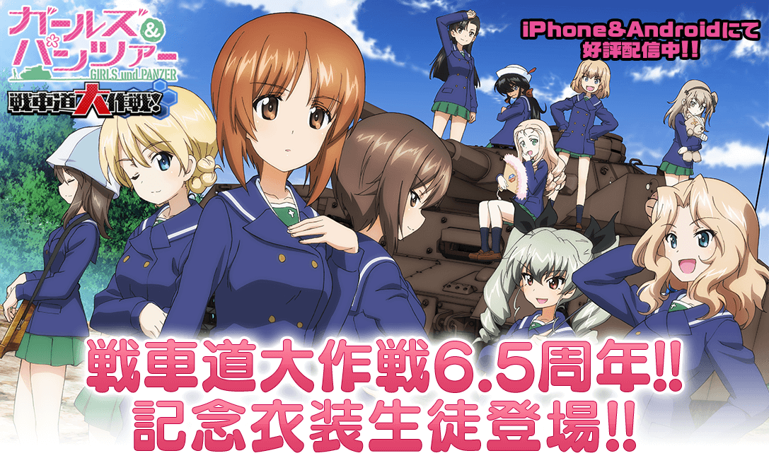 株式会社モブキャストホールディングス(本社:東京都港区、代表取締役CEO:藪考樹)の子会社である株式会社モブキャストゲームス(本社:東京都港区、代表取締役CCO:細野博孝)が参画する戦車道大作戦実行委員会(株式会社博報堂DYミュージック&ピクチャーズ、株式会社モブキャストゲームス)は、iOS/Android向けゲーム『ガールズ&パンツァー 戦車道大作戦!』において、6.5周年記念衣装生徒登場についてお知らせいたします。