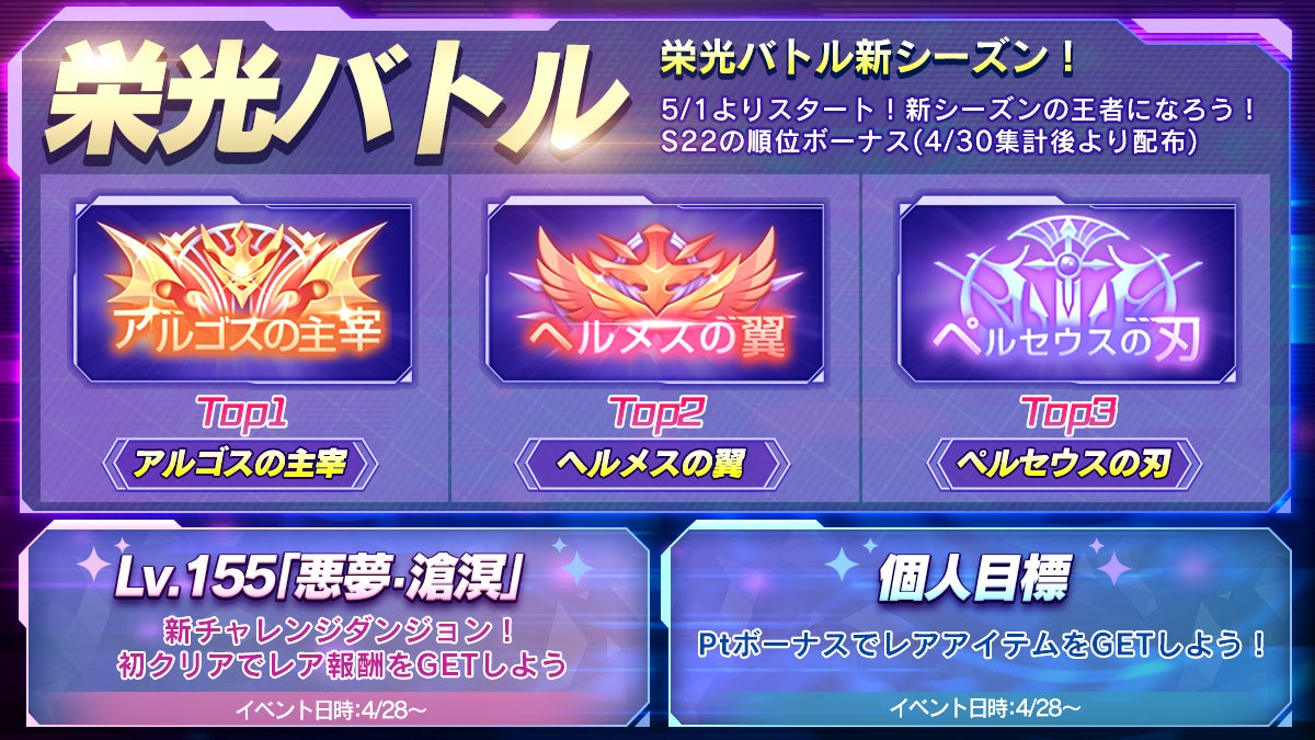 ■「栄光バトル」シーズン22の順位ボーナスは、新シーズンが開始後より配布!