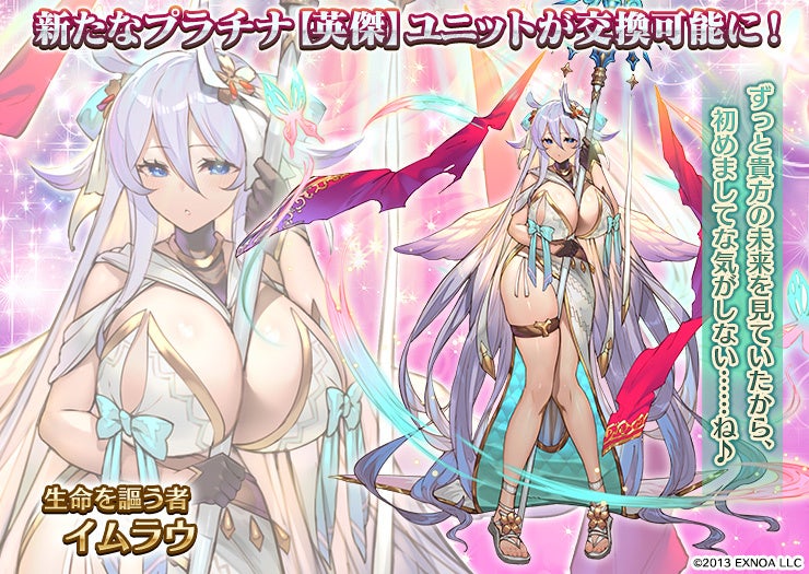 常設の『英傑結晶交換所』には、レアリティプラチナ【英傑】のピューティアー『生命を謳う者イムラウ』が追加されます!