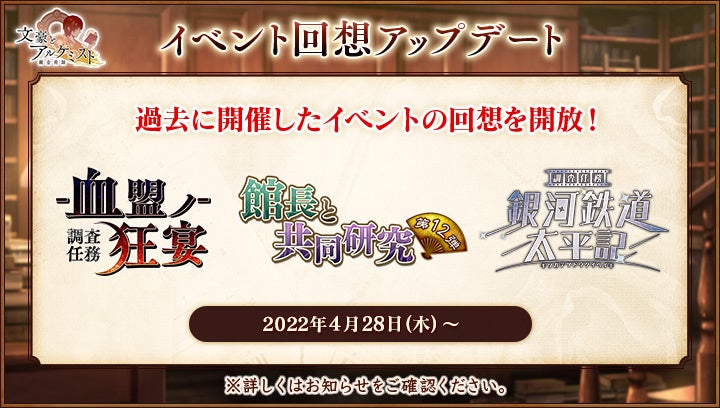 過去に開催したイベントの回想を開放いたしました。今回のアップデートでは、以下3つのイベント回想が図鑑よりいつでも確認できます。