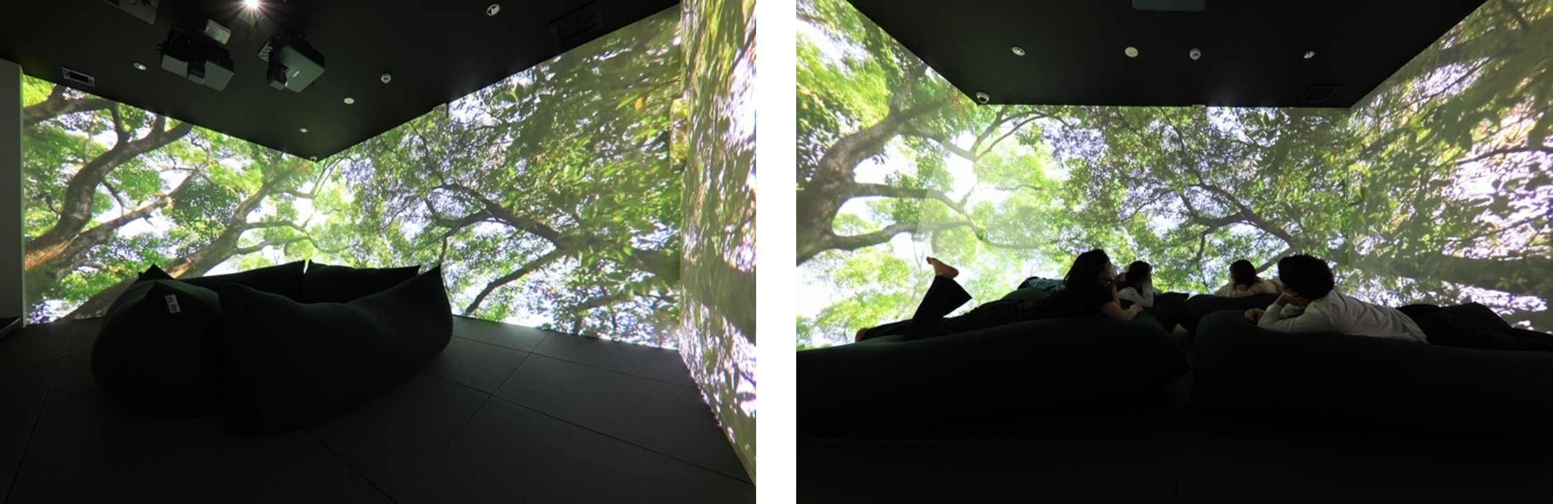 雄大な自然の風景などの映像体験で、外気浴のようなリラックス効果を演出します。