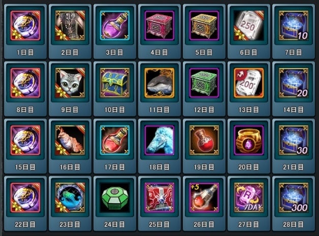 当イベントでは、期間中に特定のレベルに到達すると、冒険に役立つアイテムや装備を強化できるアイテムなど様々なアイテムを受け取ることができ、イベント開始時に既にレベル70に到達しているキャラクターは、期間中のログイン日数に応じてアイテムを獲得できます!